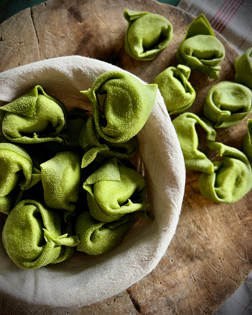 Découvrez les Tortelli Matti : des pâtes fraîches de Bologne, entre tortellini et tortelloni, garnies de ricotta, mortadelle et parmigiano, dans une pâte verte aux épinards. Une recette du Carnaval, pleine de souvenirs et de gourmandise, on les adore.