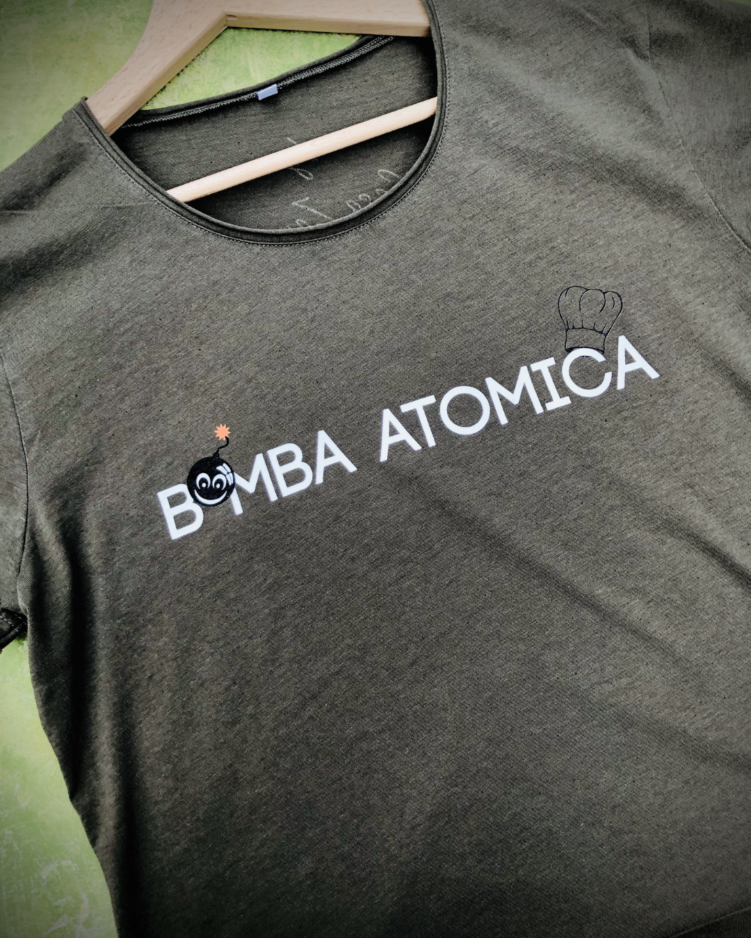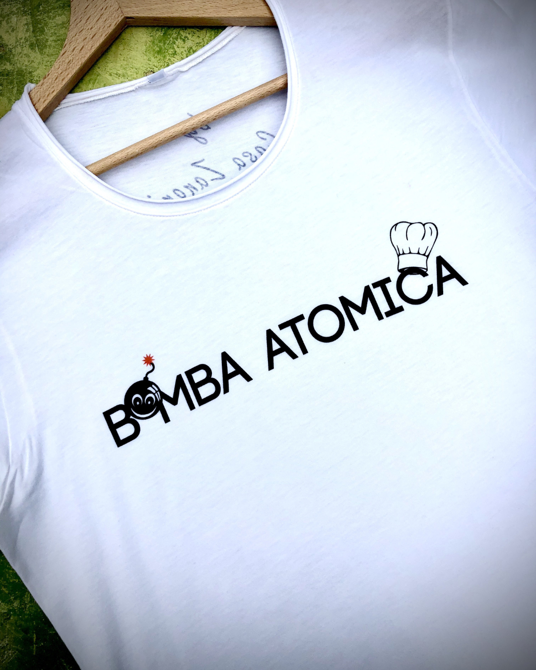 Envie de savoir ce que le Chef porte sous son tablier ? Son incontournable T-shirt Bomba Atomica ! Un T-shirt qui met de bonne humeur, plein d’énergie et de style. Fabriqué en Italie, il apporte un rayon de soleil à votre dressing. L’indispensable du Chef !